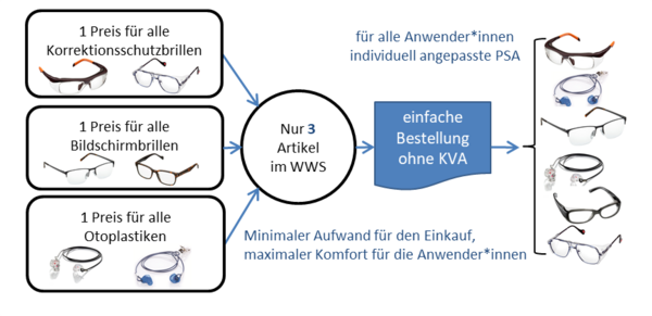 Für den Einkauf ist die Beschaffung von individueller PSA bei Marktbegleitern eine erhebliche Herausforderung. Eine Bestellung vielfach anfassen zu müssen, weil der Kostenrahmen bei Bestellung unklar ist und Kostenvoranschläge freizugeben sind, welche mit hohem Themensachverstand bewertet werden müssen, beschwert den Beschaffungsprozess und macht die Budgetplanung unkalkulierbar.